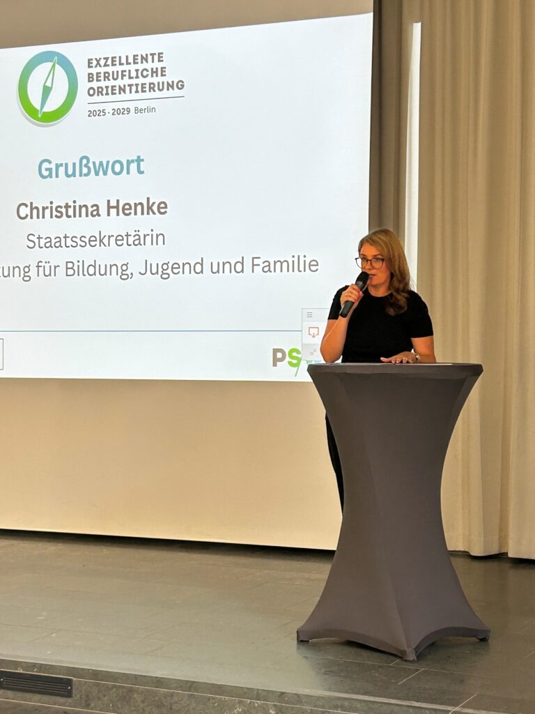 Wir, die SchuleEins, wurden am 23. September 2025 zum zweiten Mal mit dem Qualitätssiegel für „Exzellente Berufliche Orientierung“ ausgezeichnet. Dieses Siegel bekommen Schulen, die sich weit über das übliche Maß hinaus im Bereich der beruflichen Orientierung für ihre Schüler*innen engagieren und eine Vielzahl an Berufsorientierungsangeboten bereitstellen.