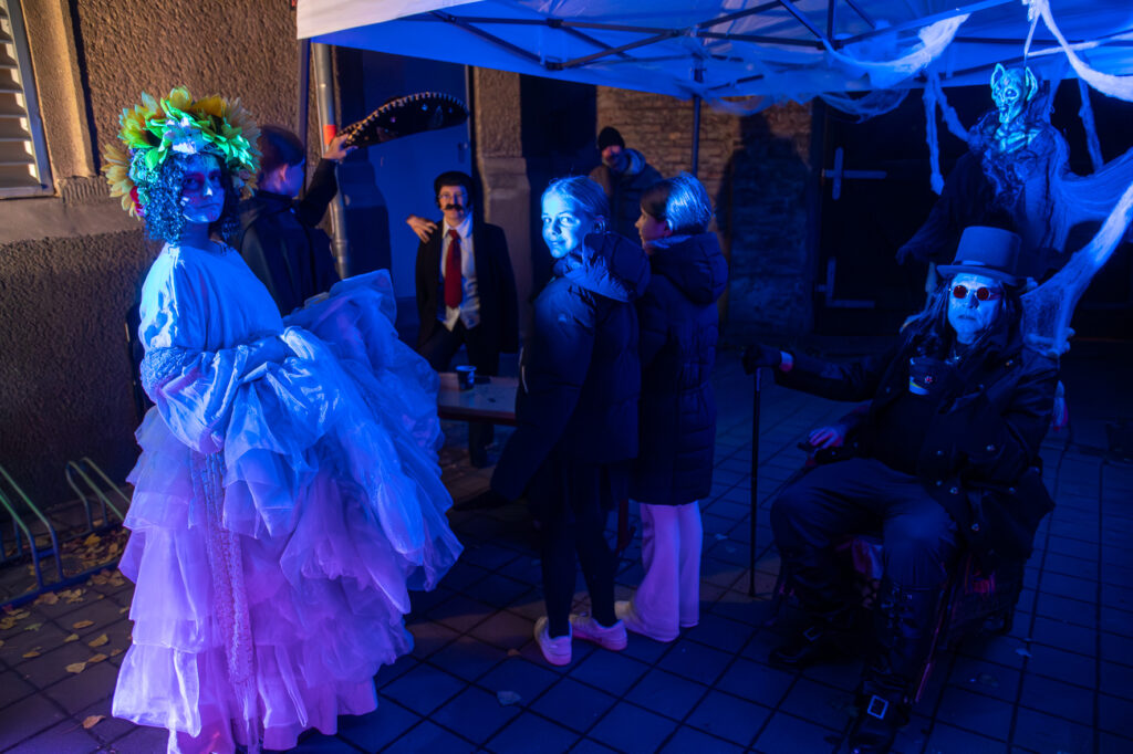 Sehnsüchtig wurde einer unserer Schulhöhepunkte direkt nach den Herbstferien herbeigesehnt. Klein und Groß kamen in ihren schauerlichsten Gewändern und wandelten über das Schulgelände bis nach ganz oben in den Gruseltunnel. Überall auf unserem Schulgelände gab es Überraschungen, die für das notwendige Gruselfeeling sorgten. Das Fest wurde wieder begleitet von dem Motto „Día de los Muertos“ und so hatte die Schulgemeinschaft in den Tagen zuvor bereits Gelegenheit, den Verstorbenen zu Gedenken. Am Altar in der Mensa „Laderampe“ konnten diese in Andacht hinterlegt werden.