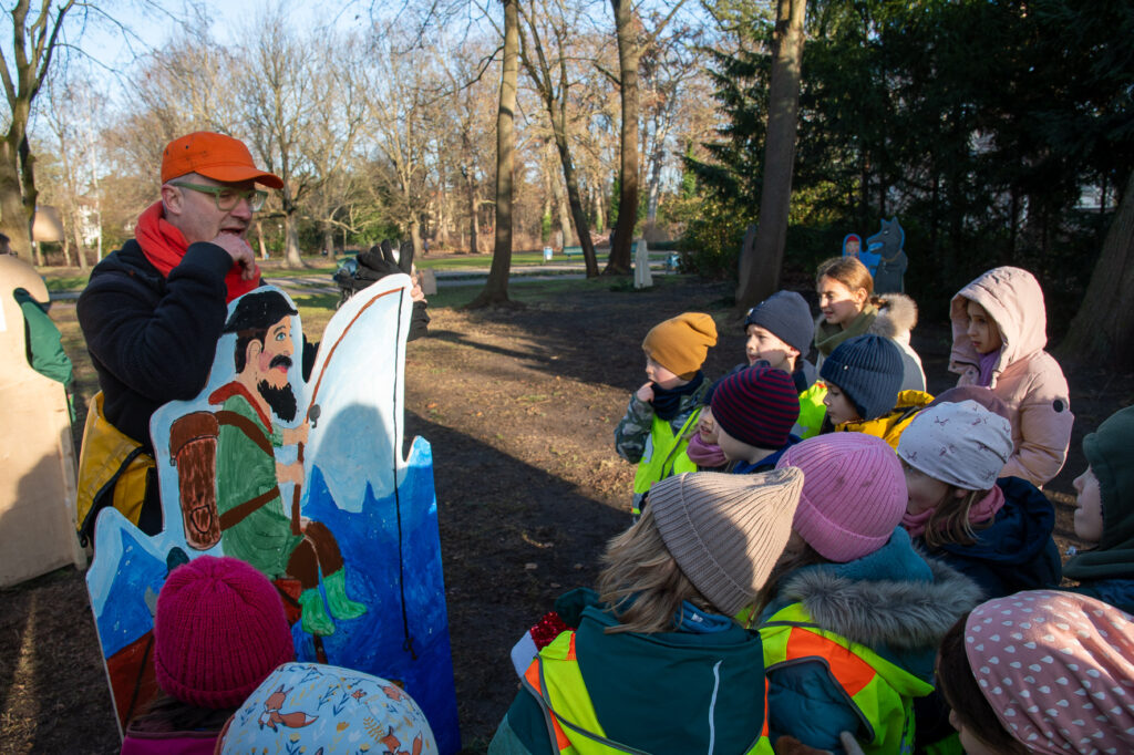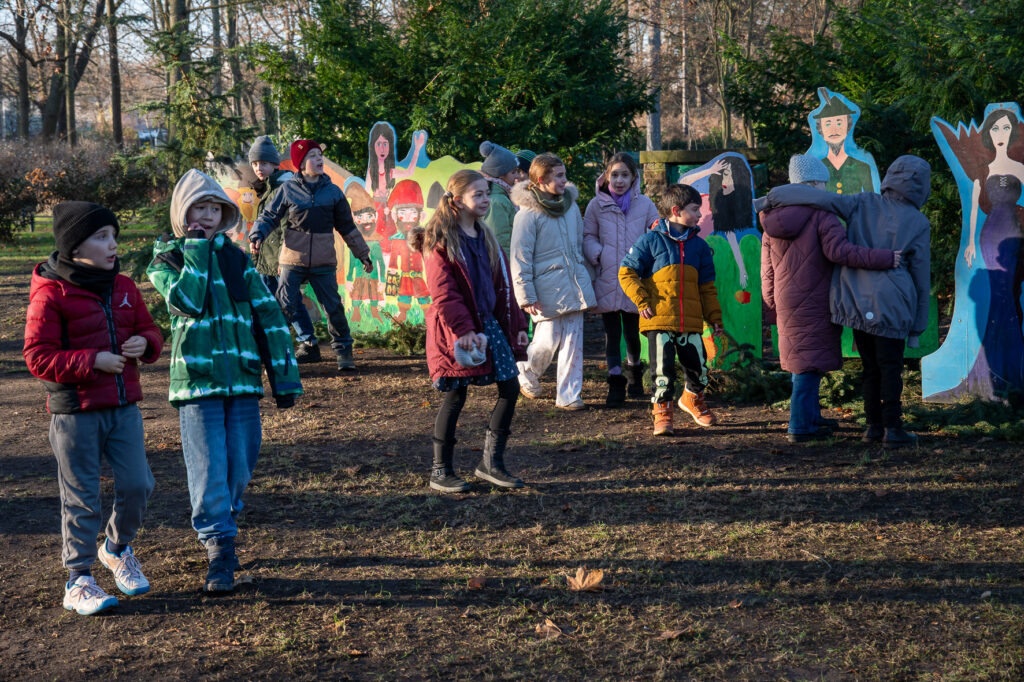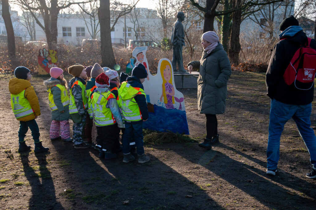Am letzten Dienstag, dem 16.12.2025, sind die neuen Märchenfiguren aus dem Lebensweltenkurs „Kommando: Heile Welt!“ in den Pankower Bürgerpark eingezogen.