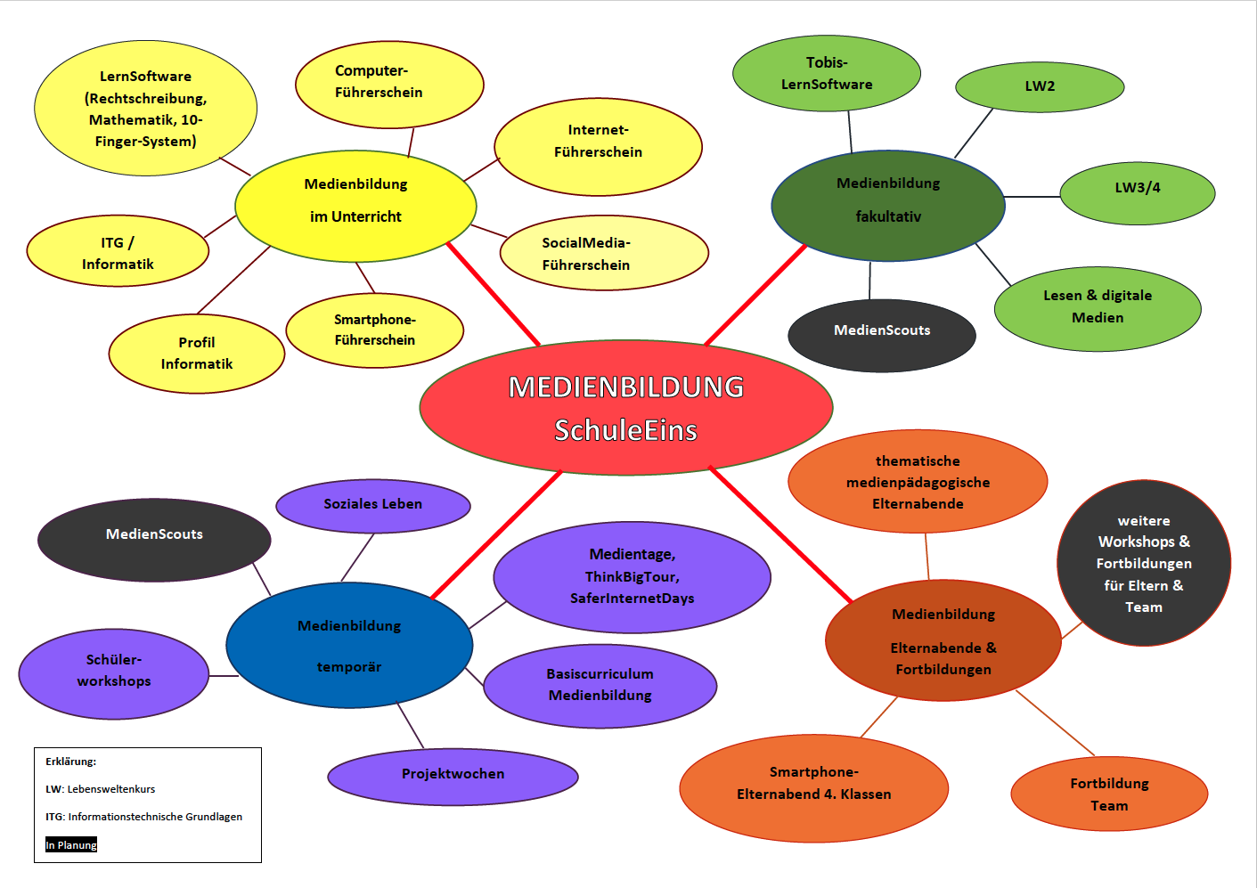 Die SchuleEins betrachtet Medienbildung als integralen Bestandteil ihres Bildungs- und Erziehungsauftrags. Ziel ist es, Schüler*innen, pädagogisches Personal und Eltern für die Herausforderungen einer digitalisierten Welt zu sensibilisieren und zu befähigen. Dabei stehen sowohl die Chancen als auch die Risiken digitaler Medien im Fokus.