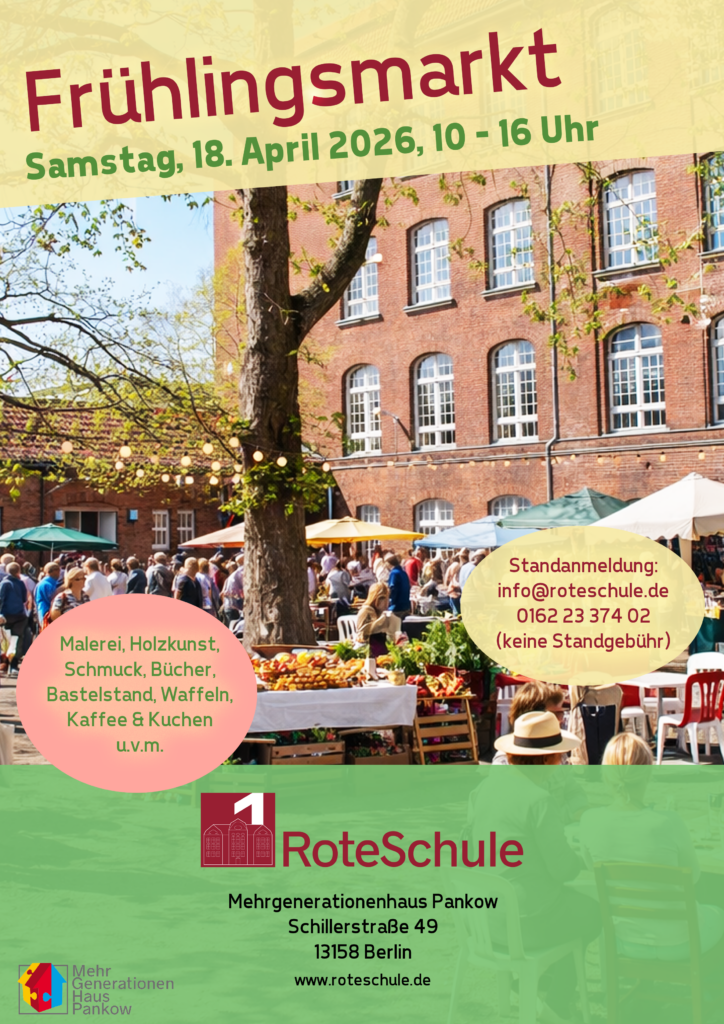 Zum Lenz öffnen wir wieder unseren Schulhof für einen Frühlingsmarkt. Neben Kreativem für Groß und Klein können auch kulinarische Köstlichkeiten erstanden werden.