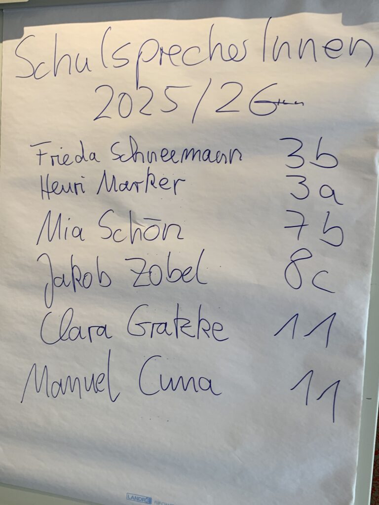 Alle waren mit Begeisterung dabei, am zweiten Tag wurden zusätzlich dazu die neuen Schulsprecher*innen für das Schuljahr 2025/26 gewählt: Aus jeder Stufe zwei, so dass es ein Gremium von sechs ergibt, die aus dem Pool der Klassensprecher*innen jährlich gewählt werden. Die diesjährigen Schulsprecher*innen sind: